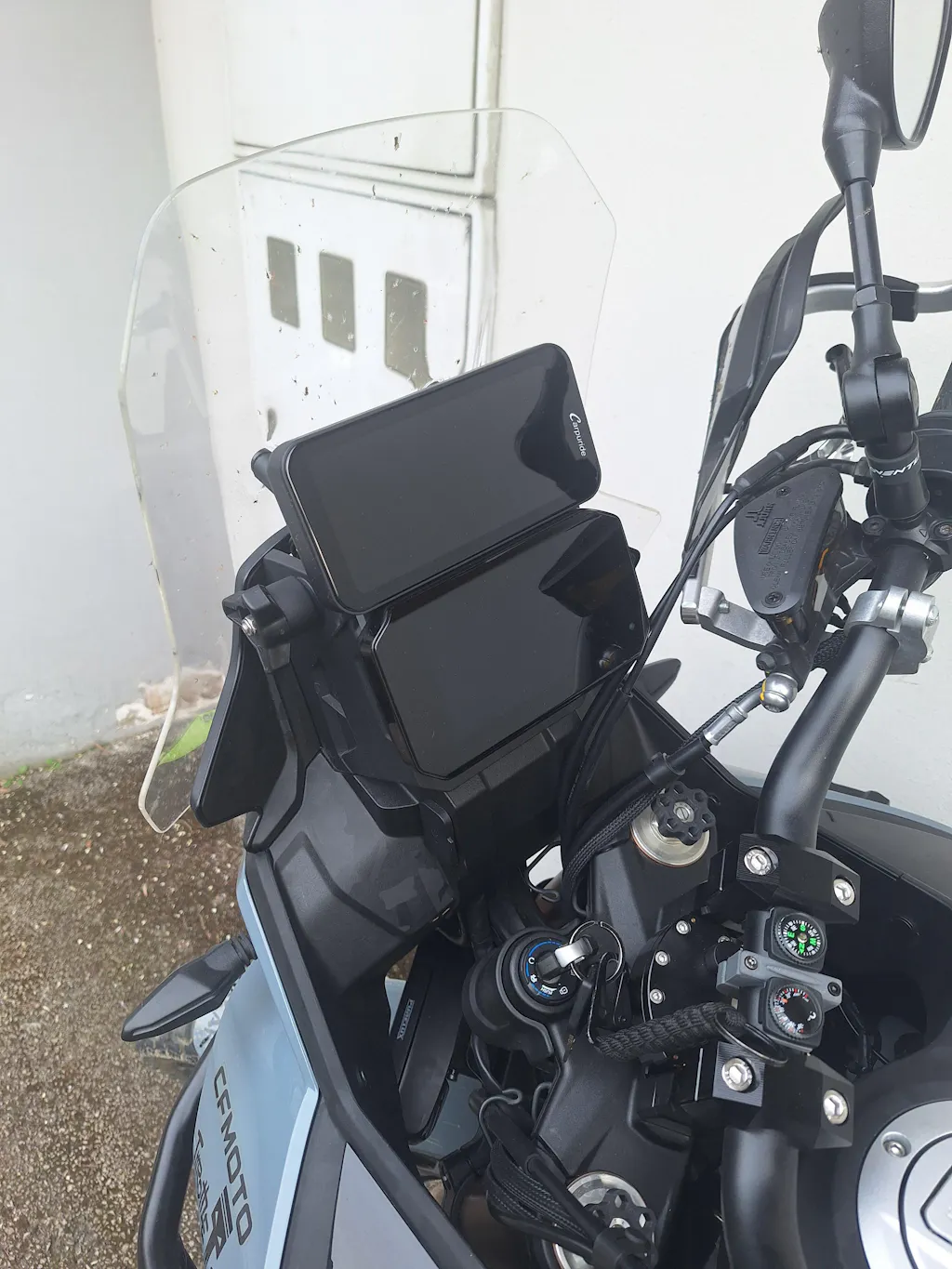 Some riders prefer to mount their GPS on the fuel tank using magnetic or adhesive mounts. This position provides a clear view and can be more convenient for some bikes that don't have a lot of room on the handlebars.