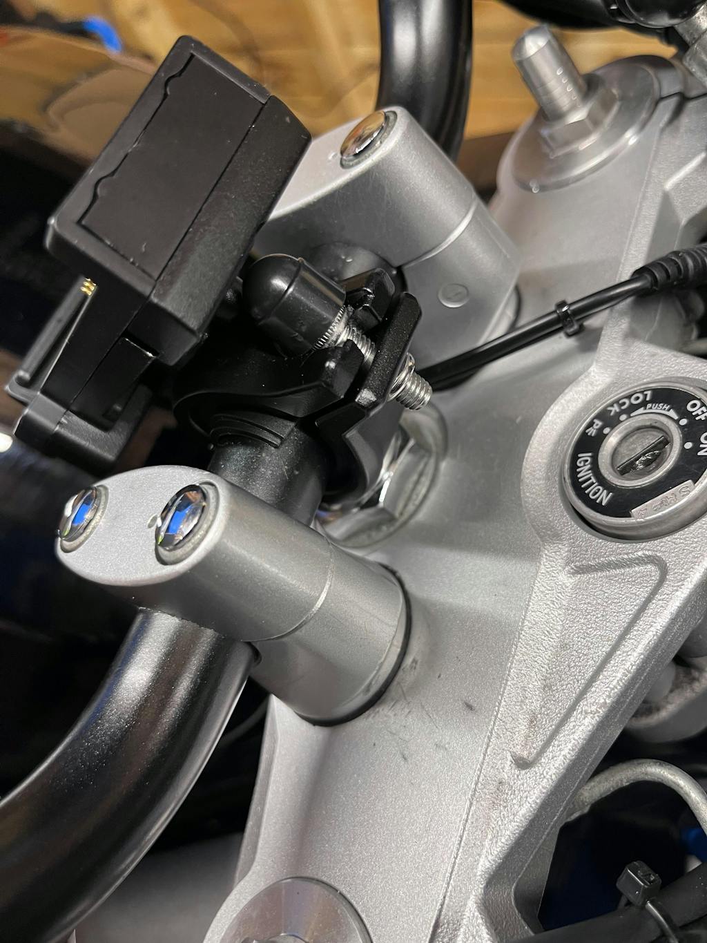The BM05 bracket offers BMW-inspired plug-and-play convenience for any motorcycle. Choose between two installation methods based on your handlebar type.