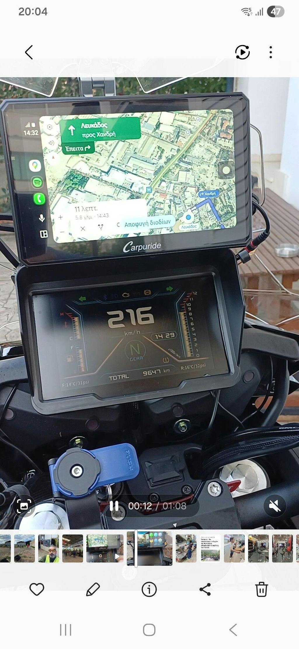 Pré-commandé, reçu, monté... Superbe écran suffisamment large mais pas trop. Bref ! taille top. Commande déportée génial et efficace. Tout est bien pensé. Il n'y a plus qu'à rouler en suivant le GPS et au rythme de la musique dans le casque... Top et merci carpuride