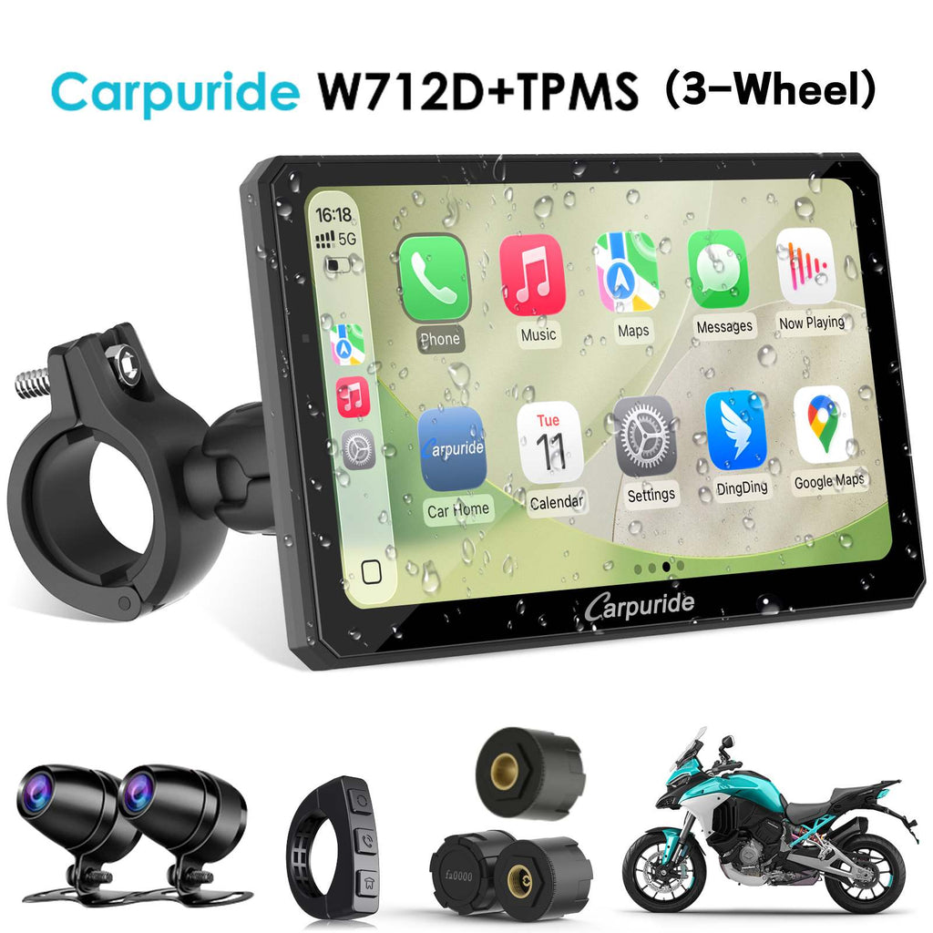 Carpuride W712D with TPMS Option | Rotatable Motorcycle Stereo with GPS Navigation & Dash Cam
