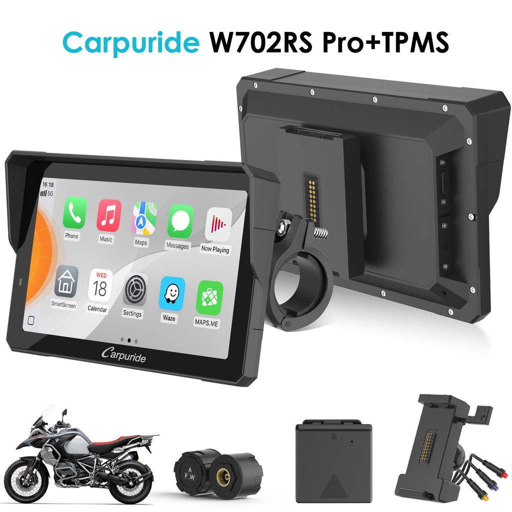 Carpuride 702RS Pro with Optional TPMS - Motorcycle CarPlay with Radar BSD & Plug-and-Play Bracket