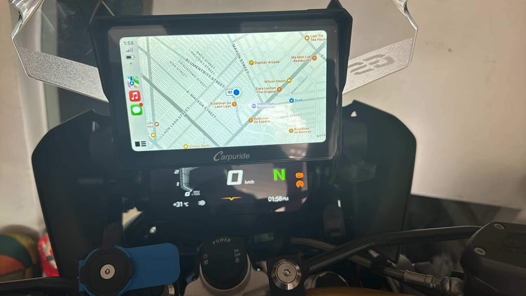 2. Install the BMW bracket to the motorcycle carplay screen.