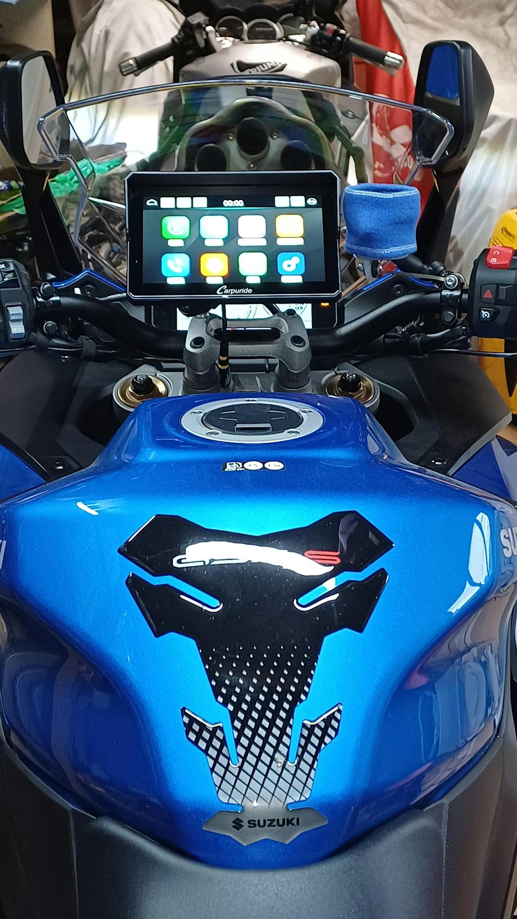 Fitting the unit to my Suzuki GSX-S1000GT was a simple and straightforward task. I hard wired it through the thunderbox, so it comes on a couple of seconds after the engine starts running and switches off a couple of seconds after the ignition is switched off. The screen is bright and can be clearly seen even in very bright sunlight. My phone is a Samsung A34 and it was easy to set up android auto and start using both music and navigation through Sygic. The TPMS is really good and monitors the tyre pressure and temperature in real time. The lean angle monitor is a nice touch,