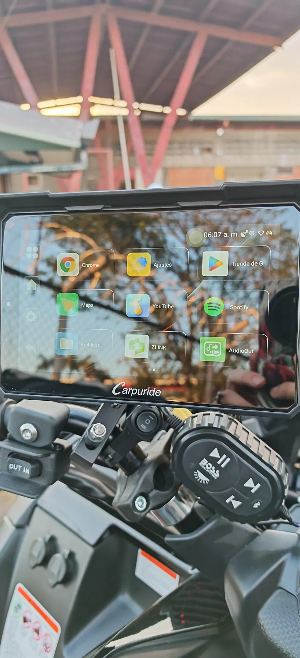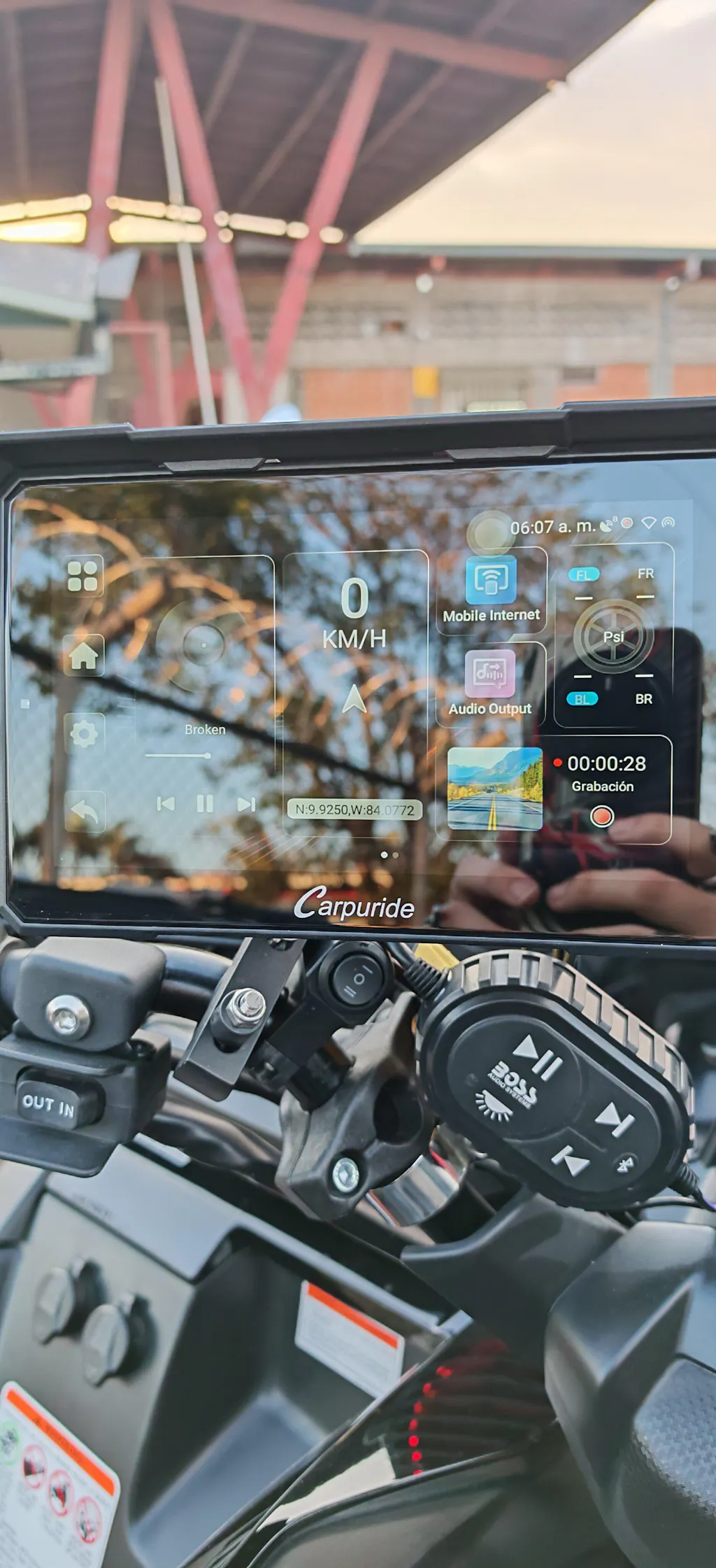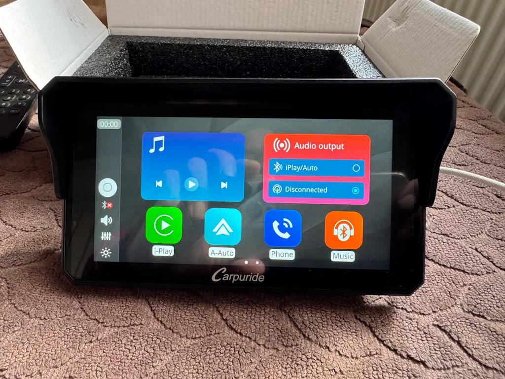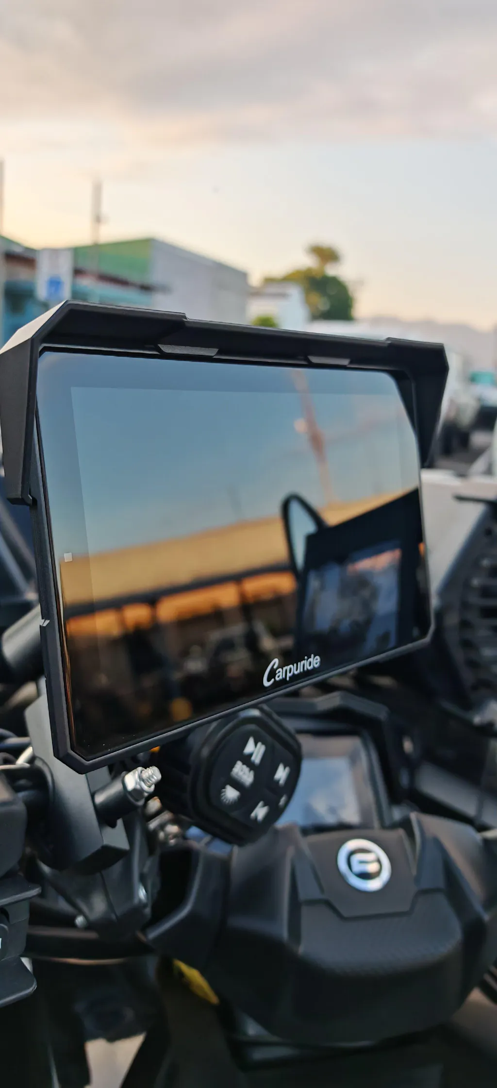 An aftermarket CarPlay screen allows you to connect your smartphone seamlessly, providing easy access to navigation, music, calls, and messages without the need to touch your phone. This helps improve safety by reducing distractions while riding.