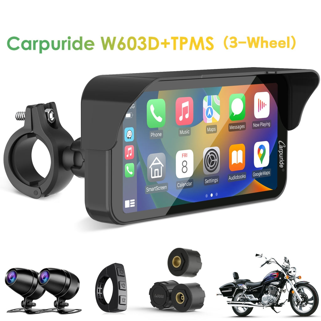 This 6.3-inch wireless motorcycle stereo supports Apple CarPlay, Android Auto, Bluetooth, and includes a 1080p HD display, backup camera, IP67 waterproofing, and free online updates.