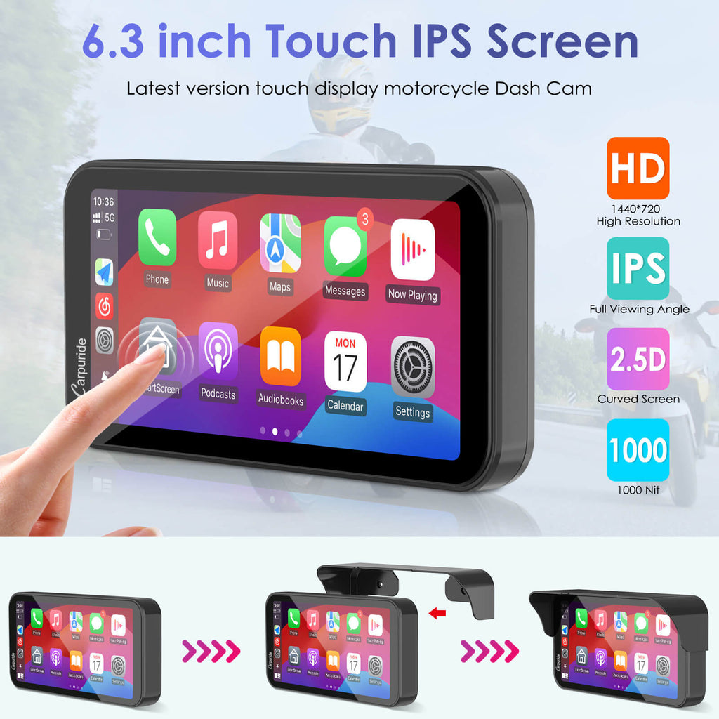 Carpuride W603B Wireless Portable Motorcycle Stereo Compatible Navigation Bracket
