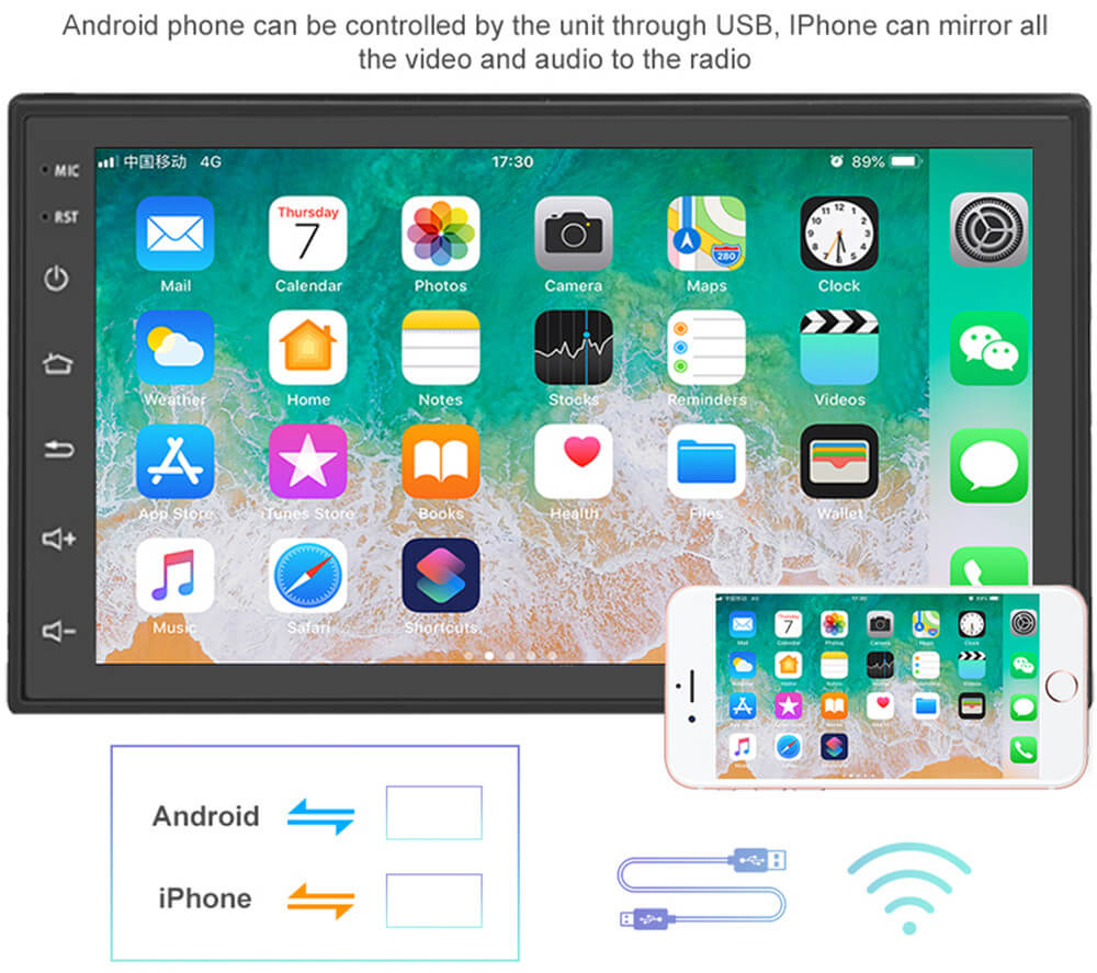 5.Steering wheel control: Through it you can control the functions you need by steering wheel, more convenient