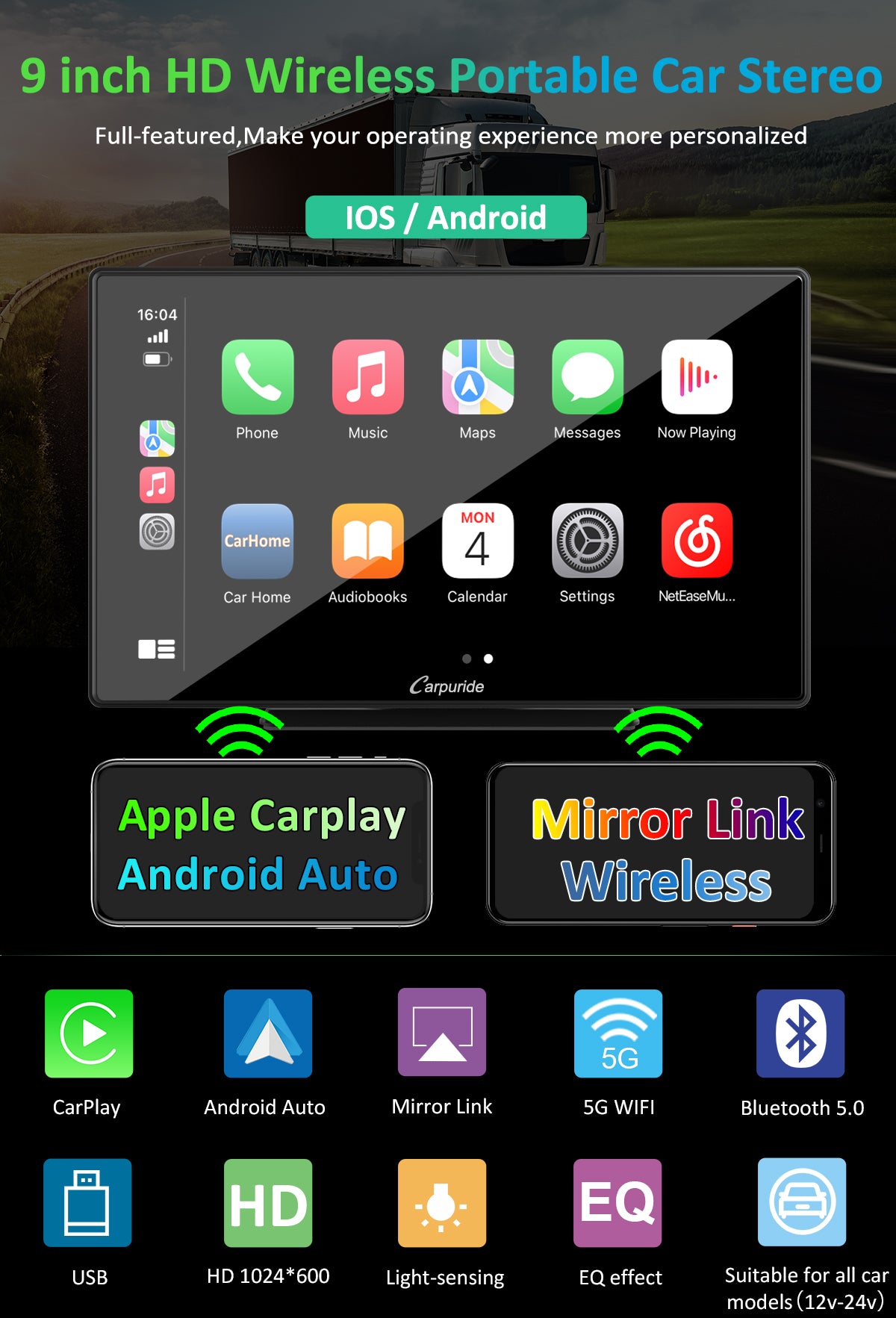 Wireless /wired connection Android Auto & Apple CarPlay & Airplay. Wired connection only AUTOLink. After connecting, you can watch videos, make phone calls, navigate, and play music.